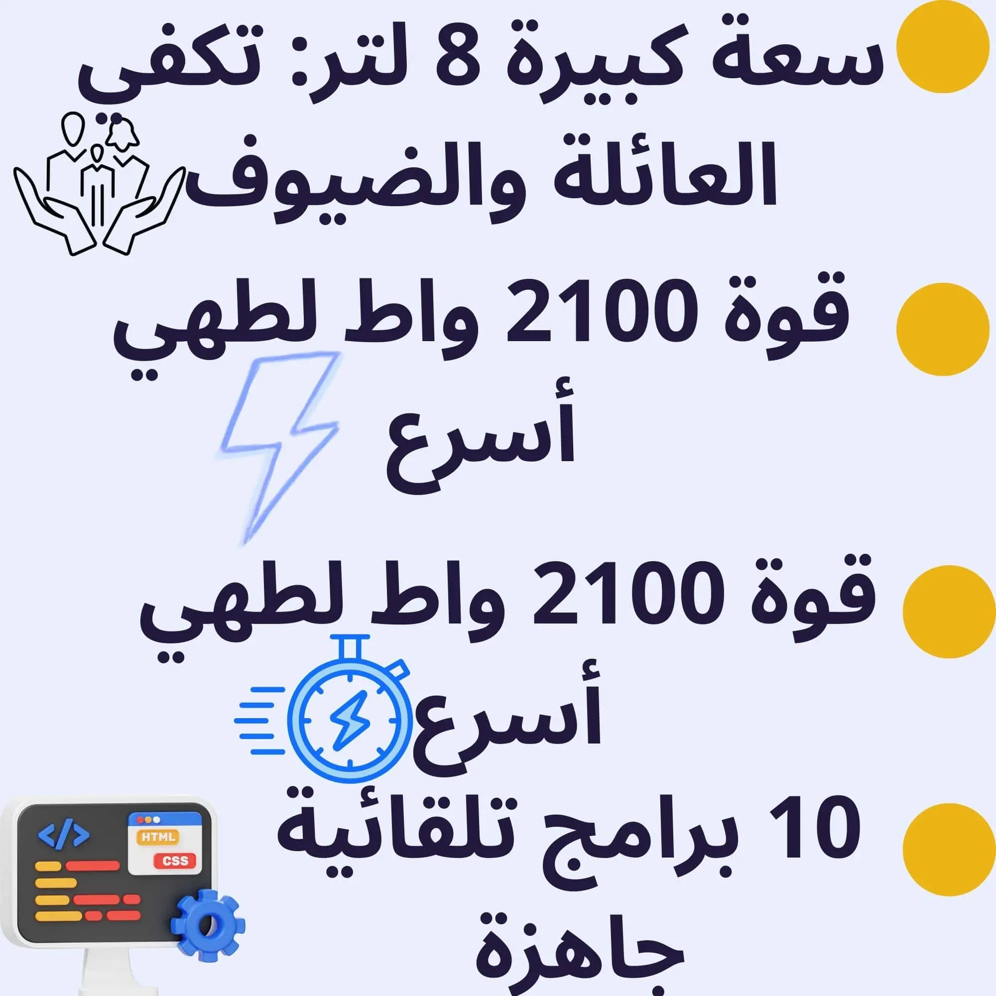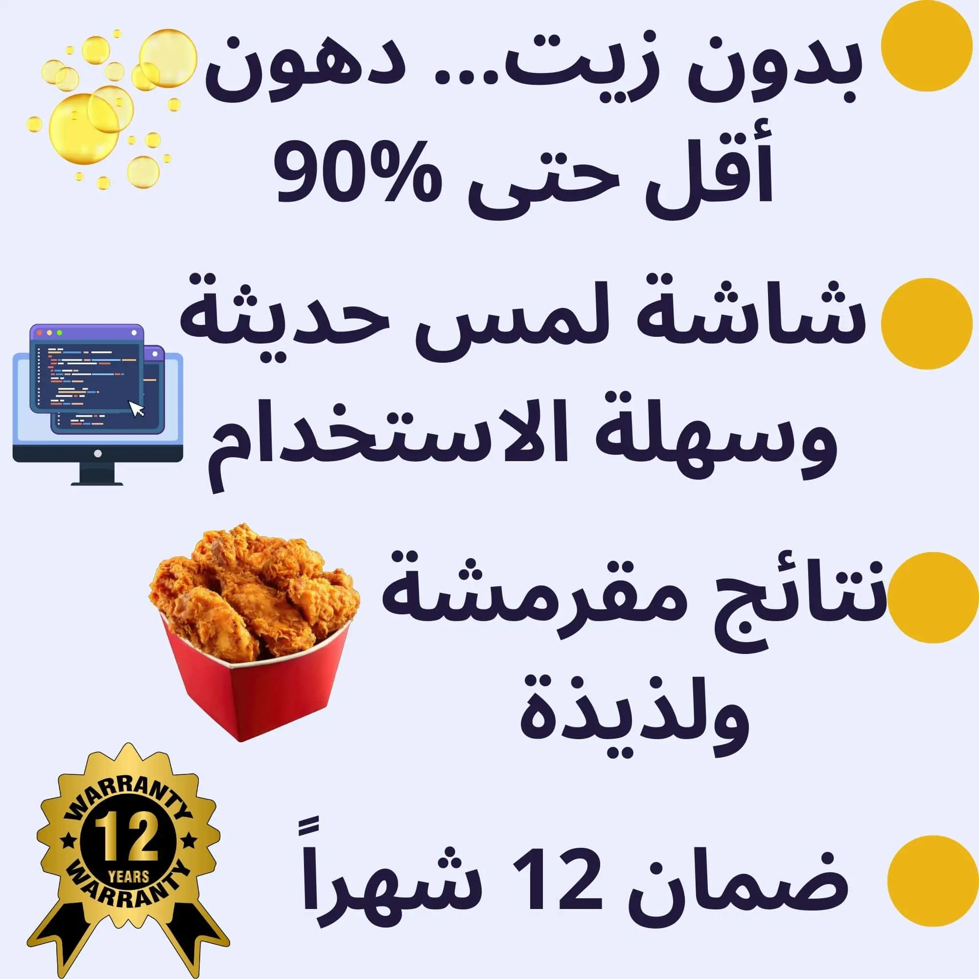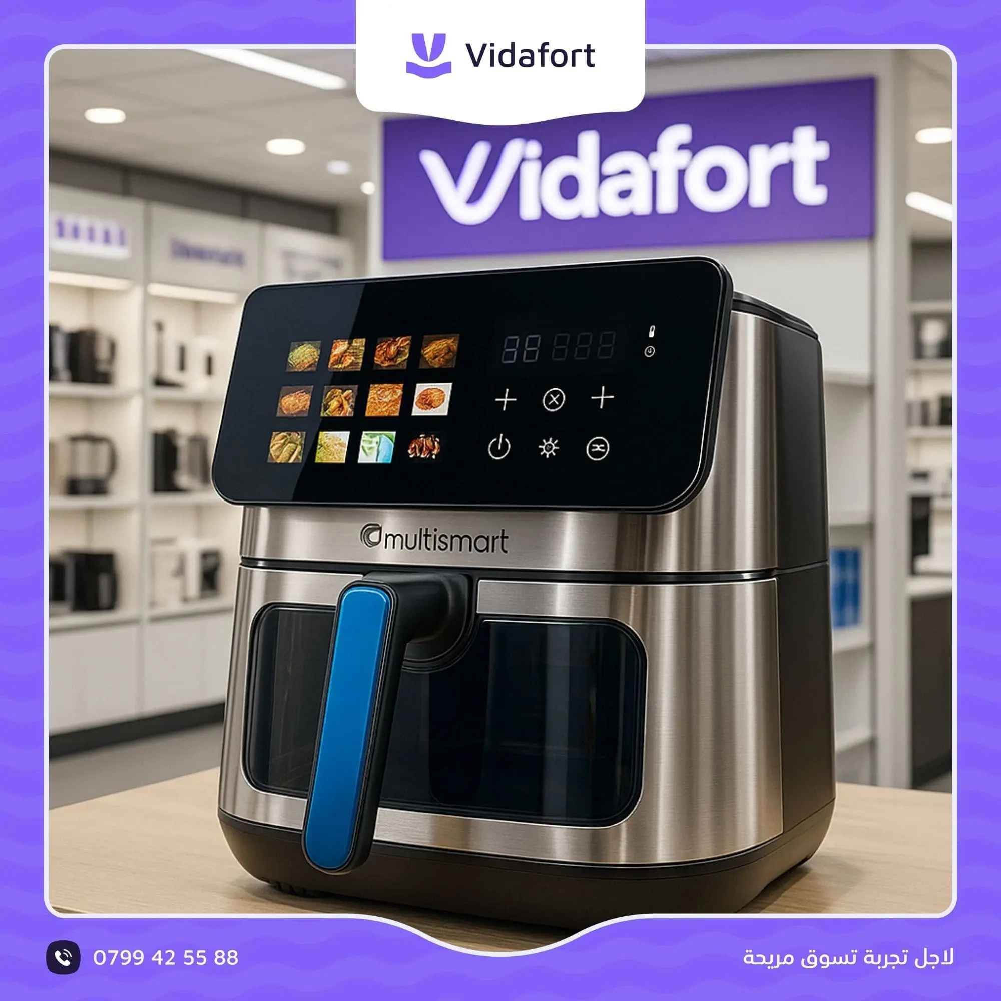 ارتقِ بتجربة الطهي الخاصة بك مع القلاية الهوائية ستانلس ستيل ذات السعة الكبيرة 8 لتر والقوة العالية 2100 واط، المصممة لتقديم أداء فائق ونتائج طبخ صحية ومقرمشة بوقت أسرع وبأقل كمية من الزيت.تجمع هذه القلاية بين القوة، السعة الكبيرة، والمواد عالية الجودة لتكون الخيار المثالي للعائلات الكبيرة ومحبي الأكل الصحي.